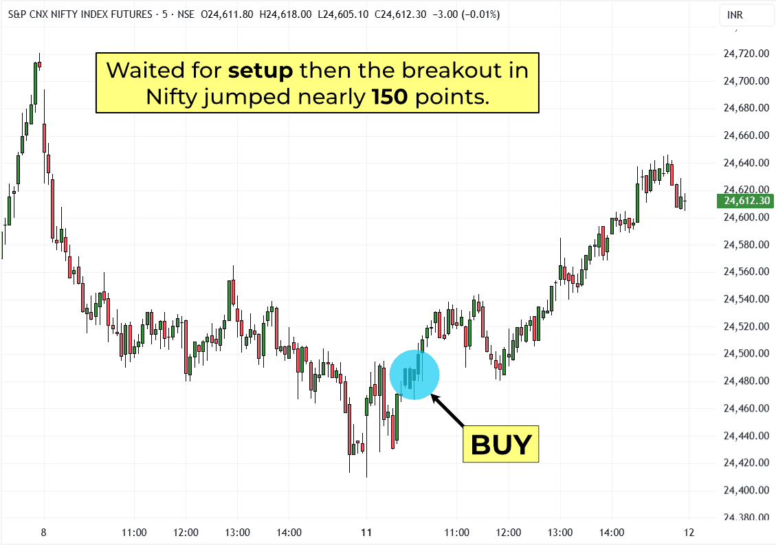 Price broke out and kept climbing, but it happened only after the setup was complete — a reminder that the right moment matters much more than the direction.