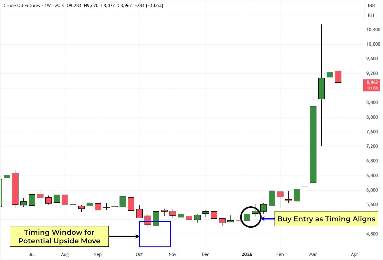 A buy in Crude Oil was forecasted around October, but no trade was executed then because the setup was not ready. Later, when the setup became clear, it was ready to be acted on. This shows the difference between spotting a move and being ready to act on it with a clear plan.