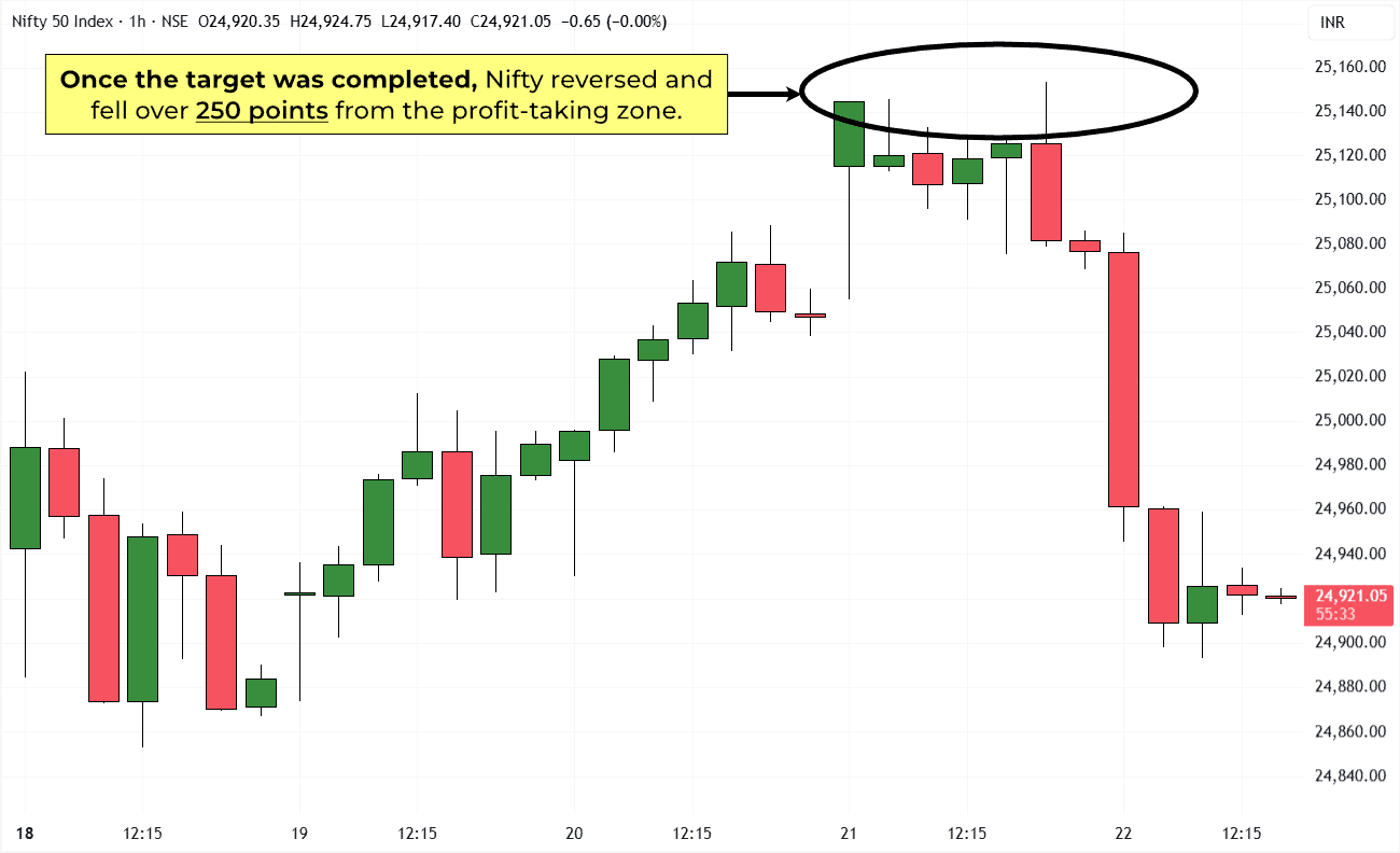 By Thursday, it reached the target we had calculated at entry, delivering a clean 1:2 risk-to-reward outcome—twice the reward for the risk taken.